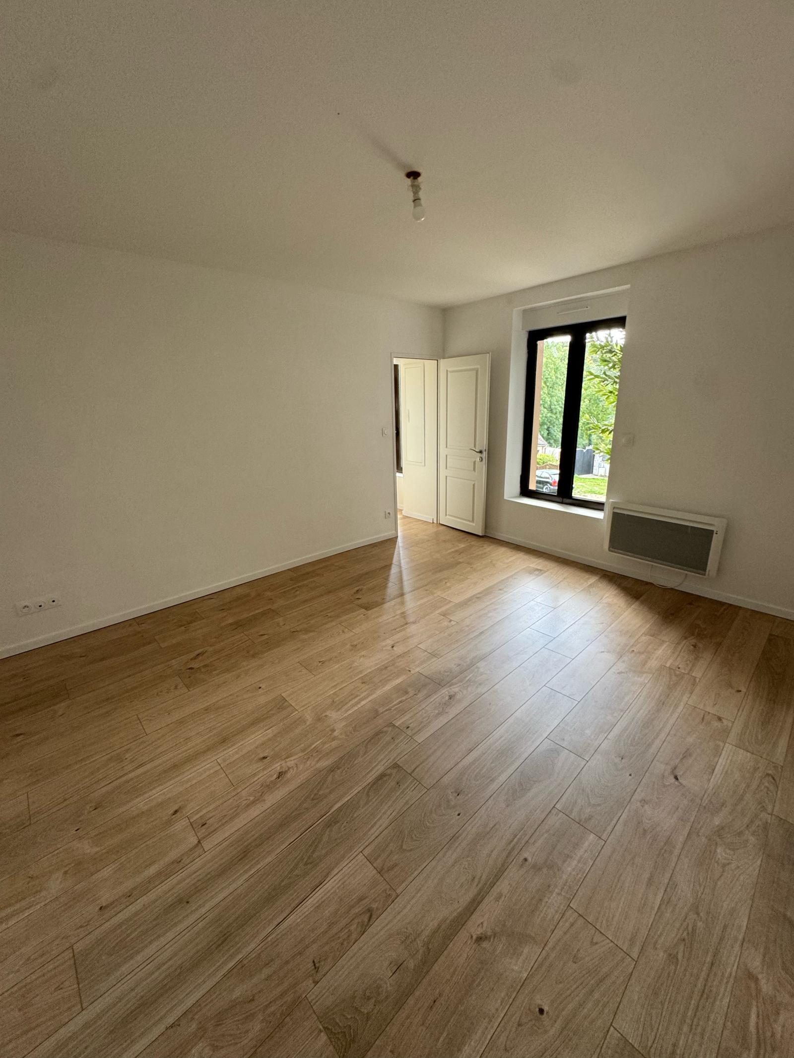Chambre spacieuse et baignée de lumière.